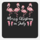 Pegatina Cuadrada Verano Cóctel Feliz Navidad En Julio Flamingo