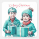 Pegatina Cuadrada Verde azulada y roja navidad navideña de ferry ven