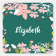 Pegatina Cuadrada Verde con flores rosas personalizadas