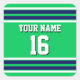 Pegatina Cuadrada Verde Esmeralda con Jersey del equipo de franjas b
