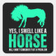 Pegatina Cuadrada Verde Sí, Huelo Como Un Caballo