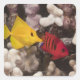 Pegatina Cuadrada Vida subacuática; PESCA: Un Tang Amarillo (Zebraso