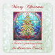 Vidrio brillante y brillante de diseño de un árbol de Navidad multicolor en un marco rojo. Con un fondo purpurina verde pálido y "Feliz Navidad". Puede cambiar el saludo personal del personalizable al final del diseño a su propio mensaje.