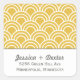 Etiquetas de boda modernas y de moda con un patrón de escala de pez amarillo y gris. Tarjetas de respuesta coincidentes, tarjetas de agradecimiento, favores de boda, etc... © Mood 4 Cute