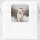 Pegatina Cuadrada Viejo pastor inglés en Navidades de nieve