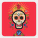 Pegatina Cuadrada Vingtage Rock Skull Rosa Floral