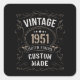 Pegatina Cuadrada Vintage 1951 Limited Edition Personalizado hecho