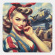 Pegatina Cuadrada Vintage Airplane Pin Up