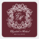Pegatina Cuadrada Vintage Burgundy Elegant Wedding Monogram Crest