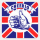Diseño de época con Union Jack, pulgares hacia arriba y el antiguo saludo británico "Cheerio".