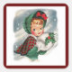 Pegatina Cuadrada Vintage Chica de Navidad Holly