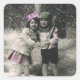Pegatina Cuadrada Vintage Christmas, Best Friends on Skis