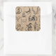 Pegatina Cuadrada Vintage Easter Rabbit & Chick Kraft Brown