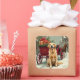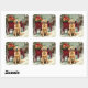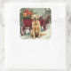 Pegatina Cuadrada Vintage Golden Retriever Christmas Carriage Illust