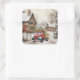 Pegatina Cuadrada Vintage Red Green Truck Árboles navideños