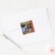 Pegatina Cuadrada Violín y cartas de juego en una mesa