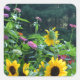 Pegatina Cuadrada Vistas al jardín, margaritas, cosmos, girasoles