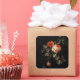 Estas hermosas pegatinas están basadas en un arte antiguo y vívido de florales exuberantes y vívidos. Las flores de dalia son más grandes que la vida y son un secreto muy bien guardado dentro de tu sobre hasta que tu invitado querido lo abra y vea esta elegante artesanía. El fondo es muy oscuro, casi negro, y las flores están en dos tonos de rosa con hermosas hojas verdes.