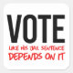 Pegatina Cuadrada Votar como si su sentencia de cárcel dependiera de
