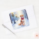 Pegatina Cuadrada Watercolor American Foxhound Snowy Lamppost