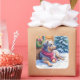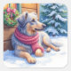 Pegatina Cuadrada Watercolor Bergamasco Shepherd Cabin Christmas