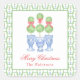 Pegatina Cuadrada Watercolor Chinoiserie Navidades Bow Topiary Gift