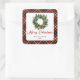 Pegatina Cuadrada Watercolor Christmas Wreath Red Green Plaid Label