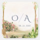 Pegatina Cuadrada Watercolor Garden Arch Monogram Wedding