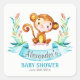 Pegatina Cuadrada Watercolor Monkey Boy Baby Shower