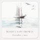 Pegatina Cuadrada Watercolor Nautical Sailing Yacht Baby Shower