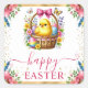 Pegatina Cuadrada Watercolor Spring Chick Basket Easter