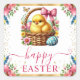 Pegatina Cuadrada Watercolor Spring Chick Basket Easter