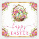 Pegatina Cuadrada Watercolor Spring Flowers Basket Happy Easter