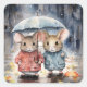 Pegatina Cuadrada Watercolour Mice in The Rain