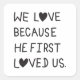 Pegatina Cuadrada We Love Because He First Loved Us Typography