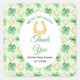 A charming St. Patrick’s Day baby shower sticker featuring a soft green background, golden horseshoes, and scattered four‑leaf clovers for a sweet “lucky charm” theme. The central white oval frames the event details beautifully, creating a warm, welcoming design perfect for celebrating a growing family. Ideal for March celebrations, Irish‑inspired themes, or any baby shower that embraces luck, joy, and new beginnings.