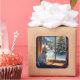 A charming Christmas painting featuring a Westie watching the snowy morning outside. This warm and peaceful artwork beautifully captures the quiet joy of Christmas Day.