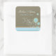 Pegatina Cuadrada Whimsical Blue Snow Flower Swirls Boda de Invierno