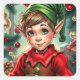 Pegatina Cuadrada Whimsical Cartoon Elf | Christmas