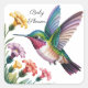 Pegatina Cuadrada Whimsical Hummingbird Floral Baby Shower