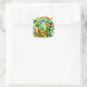 Pegatina Cuadrada Whimsical Leprechaun Horseshoe Clover Ilustracion