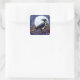 Pegatina Cuadrada Whimsical Raven Moon Floral Azul Blanco Negro