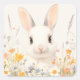 Pegatina Cuadrada White Bunny with Pink Nose in Spring Wildflower