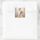 A white goose holds a vibrant bouquet of pink tulips amidst a picturesque spring garden, brought to life through a stunning watercolor effect