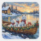 Pegatina Cuadrada White Samoyed Christmas Boat Holiday