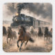 Pegatina Cuadrada Wild Mustangs Running Alongside Vintage Train