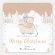 Pegatina Cuadrada Winter Bear Brown Sleigh Merry Christmas