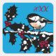 Pegatina Cuadrada Winter Chickadee en las vacaciones de invierno de