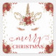 Pegatina Cuadrada Winter Poinsettia Unicorn Merry Christmas