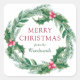 Pegatina Cuadrada Winter Sprigs Wreath Merry Christmas Watercolor